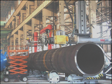 ● 2套(3套)四絲內焊:預焊之后,在鋼管內部進行4絲埋弧焊接。