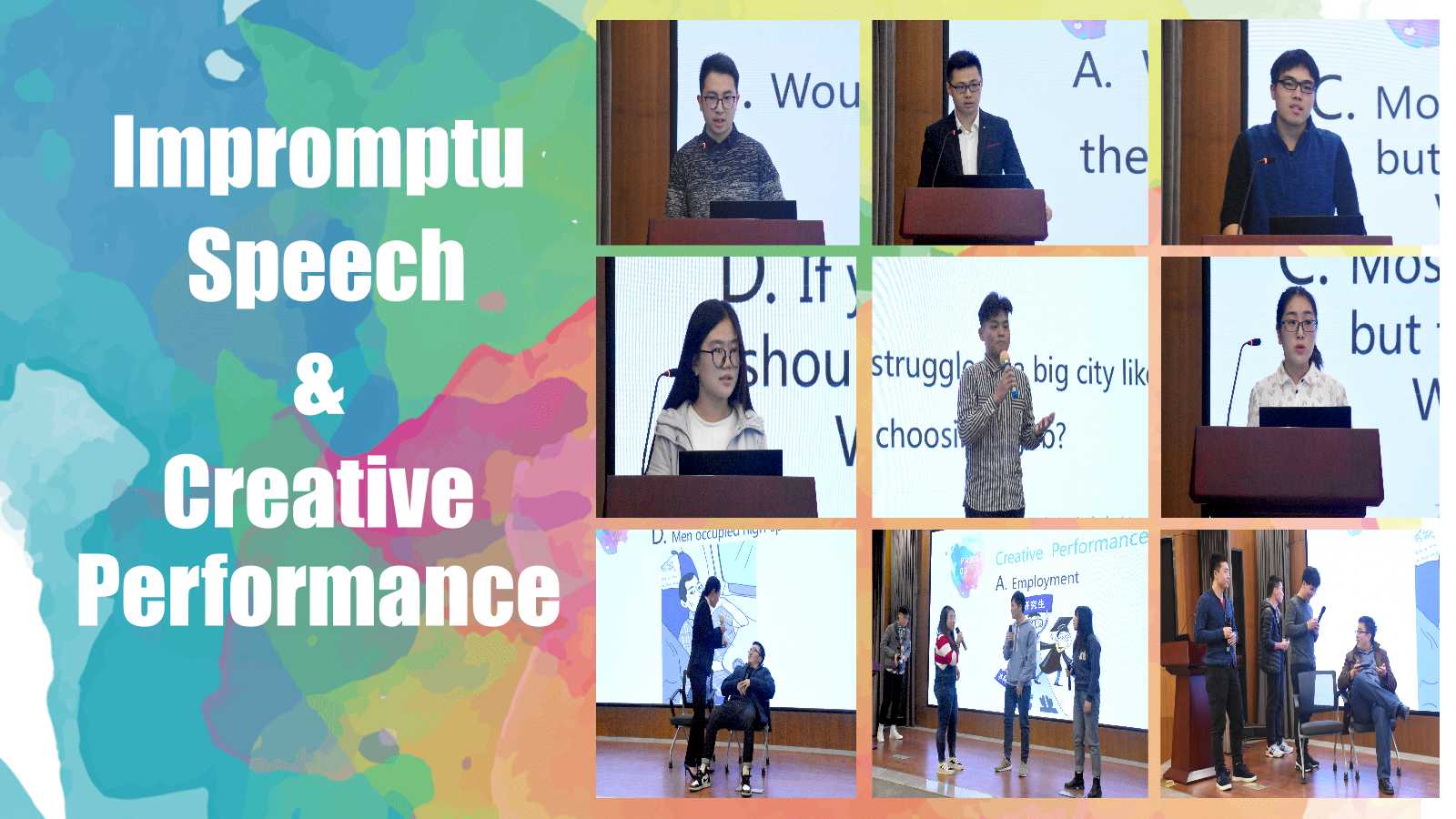 本次比賽共設“自命題演講”、“即興演講”和“創意表演”三個環節,“自命題演講”的主題為“改革開放40周年”。根據比賽環節的設置,每位參賽選手不僅需要熟記文稿,還需要在現場靈活發揮。大家在舞臺上充分展現了自己的英語風采,給評委和觀眾留下了深刻的印象。